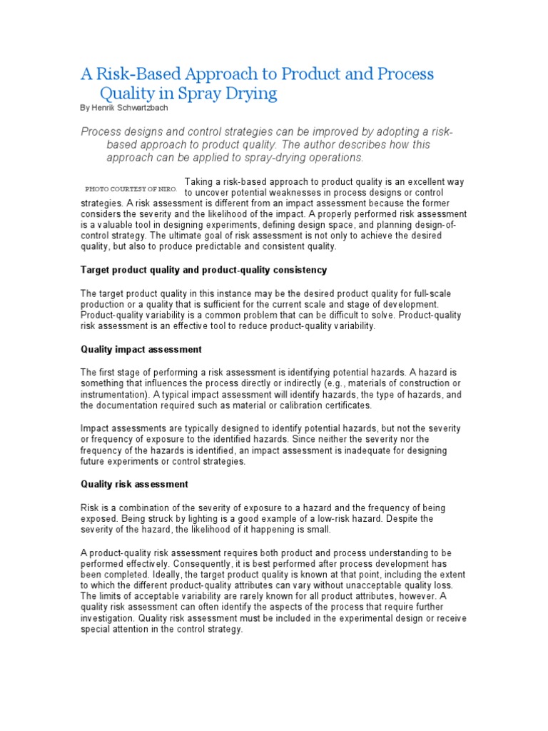 A RiskBased Approach To Product and Process Quality in Spray Drying